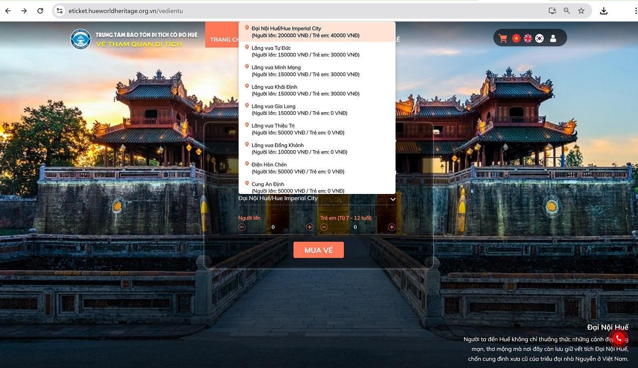 Ảnh chi tiết các điểm du lịch được miễn phí lấy tại website chính thức Trung tâm bảo tồn di tích Cố đô Huế