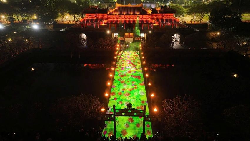 Trình diễn công nghệ 3D mapping tại cầu Trung Đạo và các hoạt cảnh cung đình, múa đèn lồng;