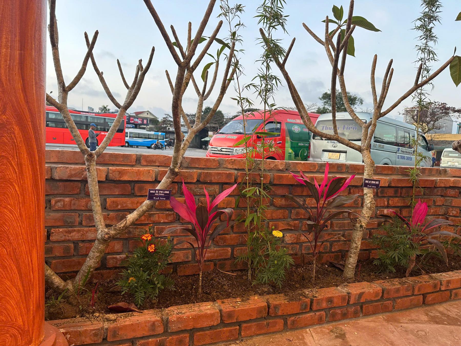 Song hành với hạng mục xây dựng, Đơn vị chuyên cung ứng cây xanh "Nông nghiệp phố" - 16 Lâm Hoàng, Tp Huế phối hợp, hỗ trợ thực hiện trồng bổ sung cây xanh xung quanh khu vực, góp phần tạo cảnh quan xanh – sạch – đẹp, hài hòa giữa kiến trúc nhà vòm và cảnh quang thiên nhiên. Cùng với quá trình chỉnh trang kiến trúc, các nhà xe đang hoạt động tại bến Nam đã đồng hành, hỗ trợ cây xanh để trồng bổ sung xung quanh khu vực như Nhà xe Minh Đức, nhà xe Phi Long (Mậu Hường), nhà xe Phi Long (Gái Sa) ... Việc chung tay của các nhà xe không chỉ góp phần tạo cảnh quan mà còn thể hiện tinh thần trách nhiệm, sự sẻ chia trong việc xây dựng môi trường bến xe văn minh, thân thiện, hài hòa giữa không gian tâm linh và thiên nhiên. Mảng xanh được bố trí hợp lý không chỉ nâng cao mỹ quan mà còn tạo không gian yên bình, thư thái, đúng với tinh thần văn hóa truyền thống của Huế.
