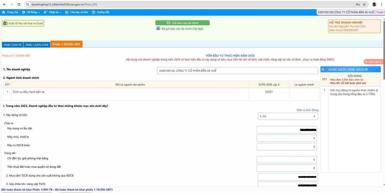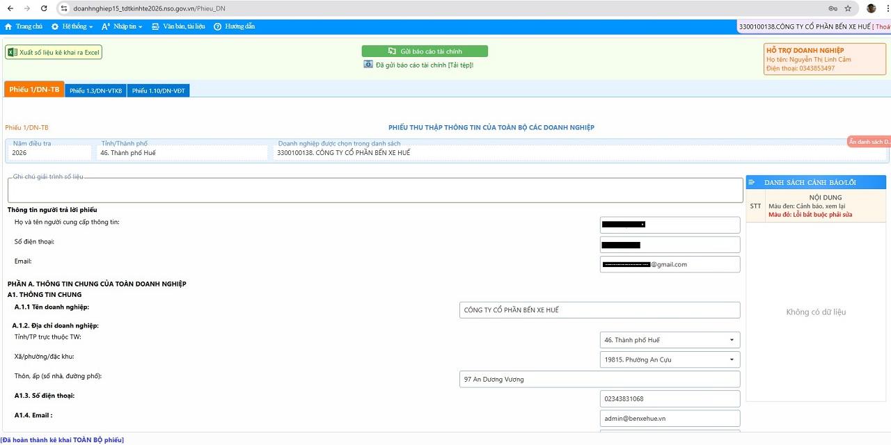 ✅ Hoàn thiện đầy đủ thông tin trên phiếu điều tra điện tử về quy mô, lao động và kết quả hoạt động sản xuất kinh doanh;