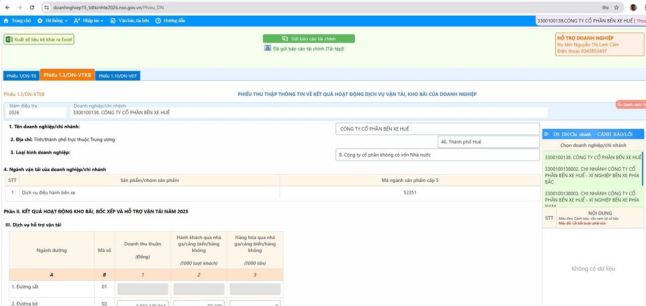 ✅ Đăng nhập hệ thống kê khai trực tuyến theo đúng hướng dẫn của Cục Thống kê thành phố Huế;