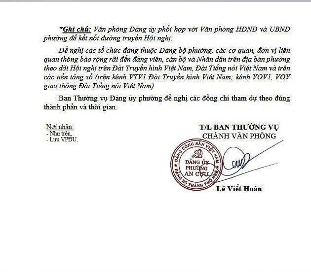 Tại điểm cầu Hội trường Cơ quan Đảng ủy phường An Cựu, hội nghị được tổ chức nghiêm túc, đúng thành phần theo giấy mời. Cán bộ, đảng viên tham dự với tinh thần tập trung, trách nhiệm, chấp hành nghiêm túc nội quy hội nghị. Việc theo dõi đầy đủ nội dung quán triệt giúp đội ngũ cán bộ, đảng viên trên địa bàn phường nắm vững mục tiêu, nhiệm vụ và giải pháp trọng tâm; đồng thời xác định rõ trách nhiệm của cấp ủy, chính quyền và các tổ chức chính trị - xã hội trong quá trình cụ thể hóa, triển khai thực hiện.