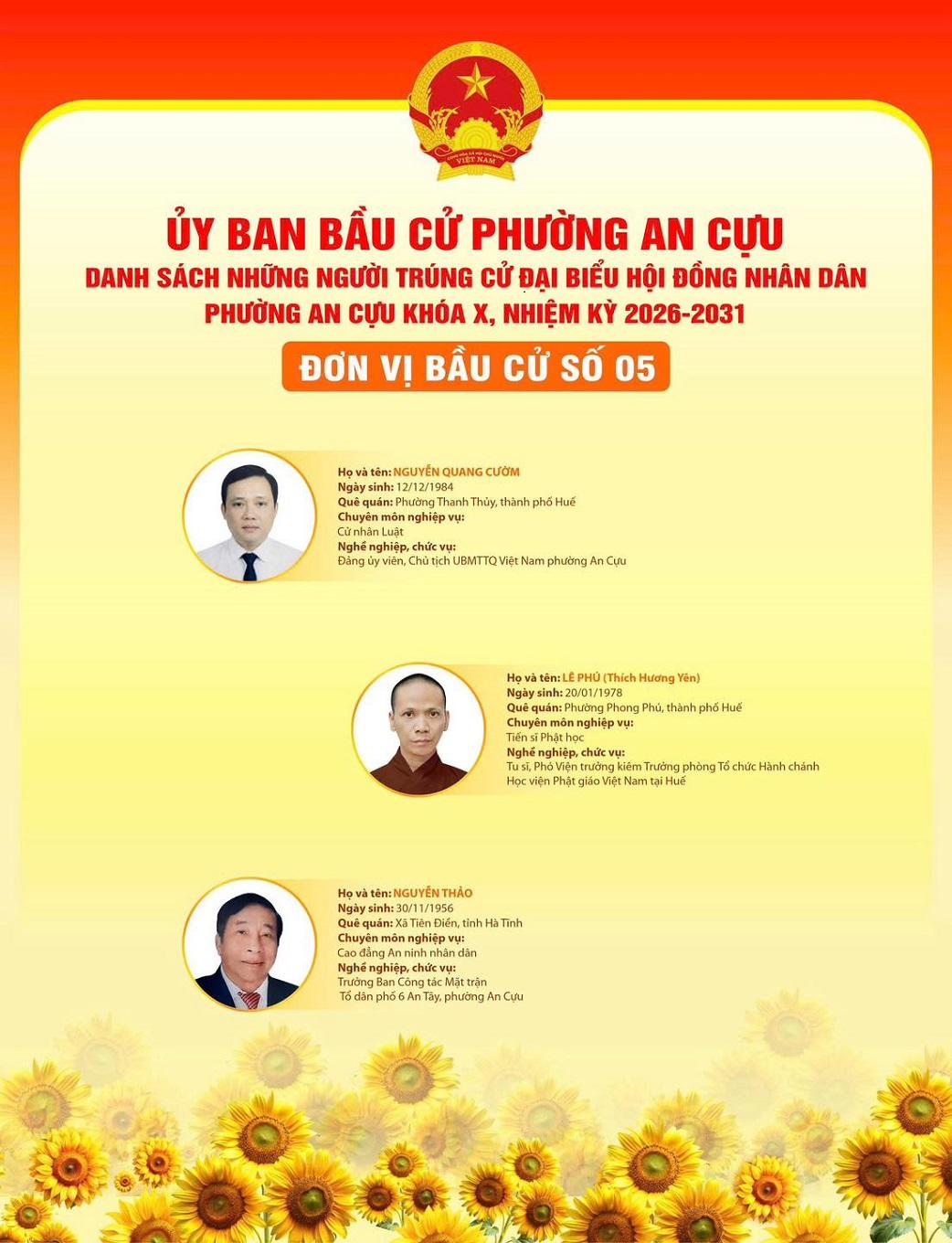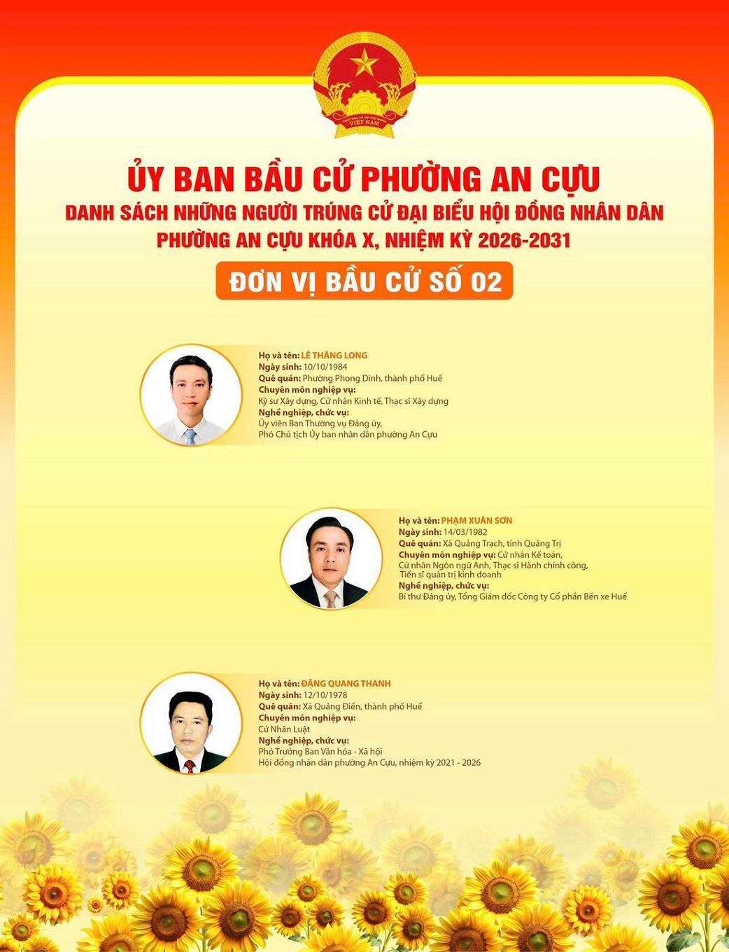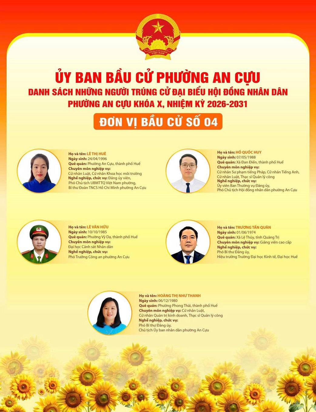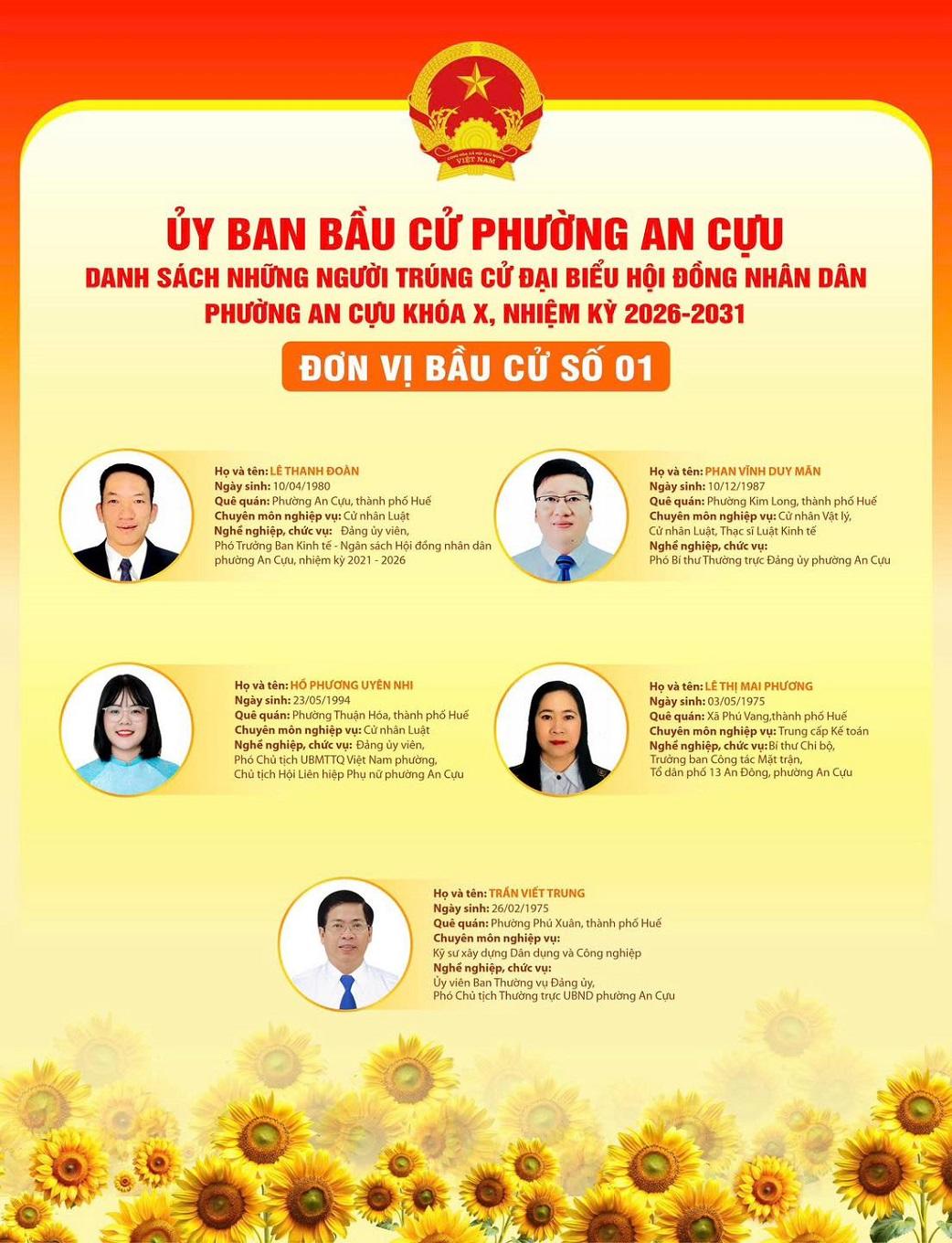 Với nền tảng kinh nghiệm quản lý doanh nghiệp vững chắc cùng mối liên hệ mật thiết với cộng đồng địa phương, Tổng Giám đốc Công ty CP Bến Xe Huế hoàn toàn có đủ điều kiện để hoàn thành tốt sứ mệnh kép này. Sự tín nhiệm mà cử tri phường An Cựu dành cho chính là nguồn động lực lớn nhất trên hành trình phụng sự cộng đồng trong nhiệm kỳ 2026–2030. Trân trọng xin được thông tin./.