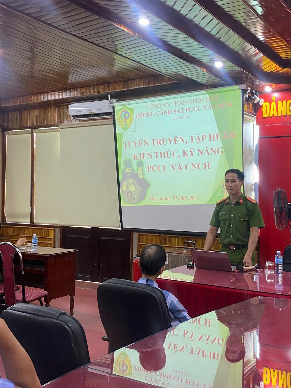 Nhân dịp kỷ niệm 21 năm thành lập Ngày Doanh nhân Việt Nam 13/10, Phòng Cảnh sát Phòng cháy chữa cháy (PCCC) và cứu nạn cứu hộ (CNCH) thuộc Công an thành phố Huế đã tổ chức buổi tập huấn kiến thức, kỹ năng phòng cháy chữa cháy và cứu nạn cứu hộ định kỳ tại Công ty CP Bến xe Huế trong ngày 11/10/2025.