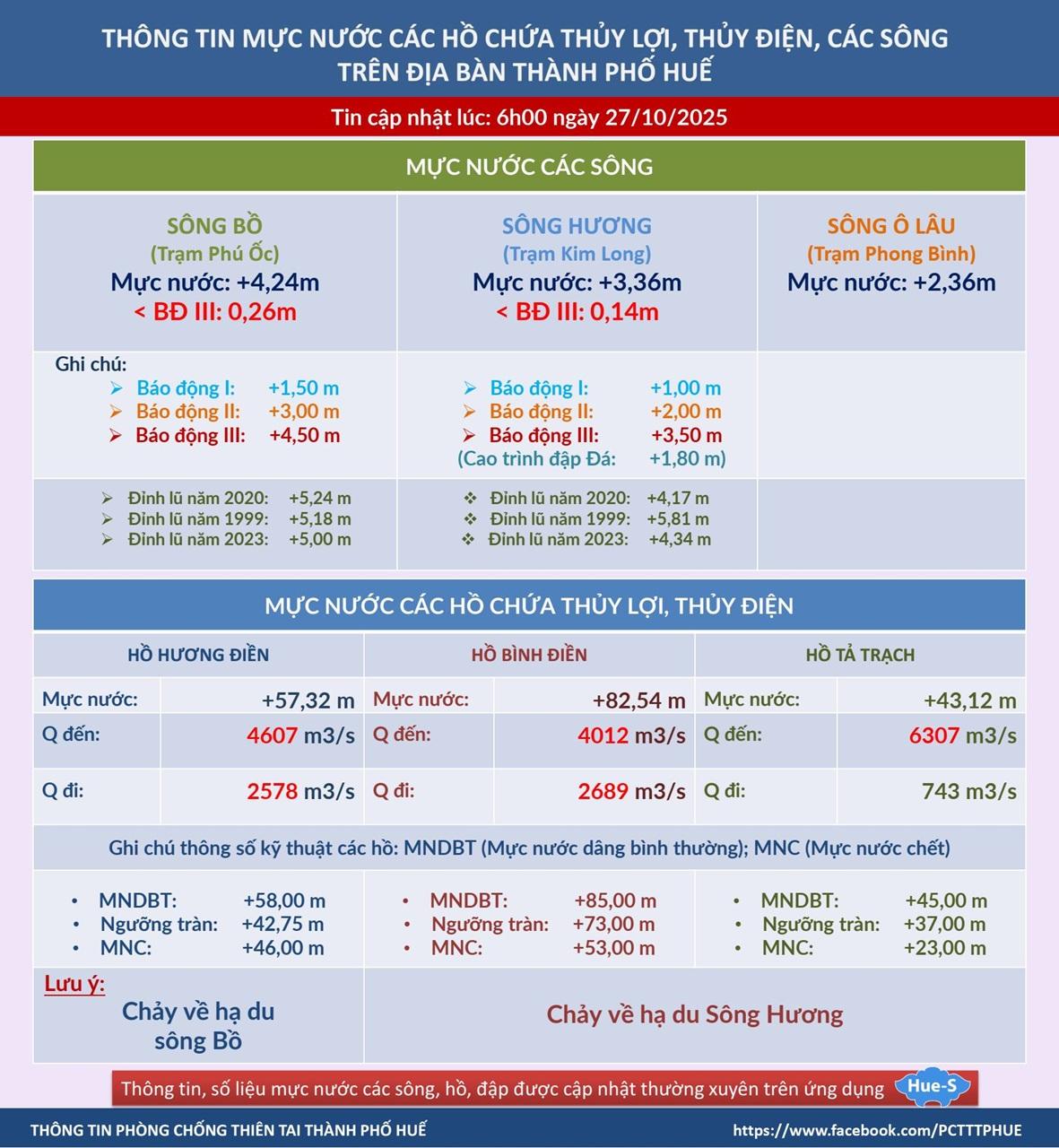 Ngoài ra, được biết theo ghi nhận cụ thể về tình hình hệ thống giao thông trên địa bàn thành phố Huế (tính đến 9h ngày 27/10/2025) dựa vào số liệu lấy từ Fanpage UBND Thành phố Huế: