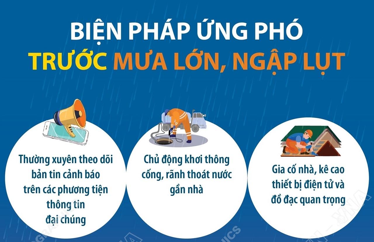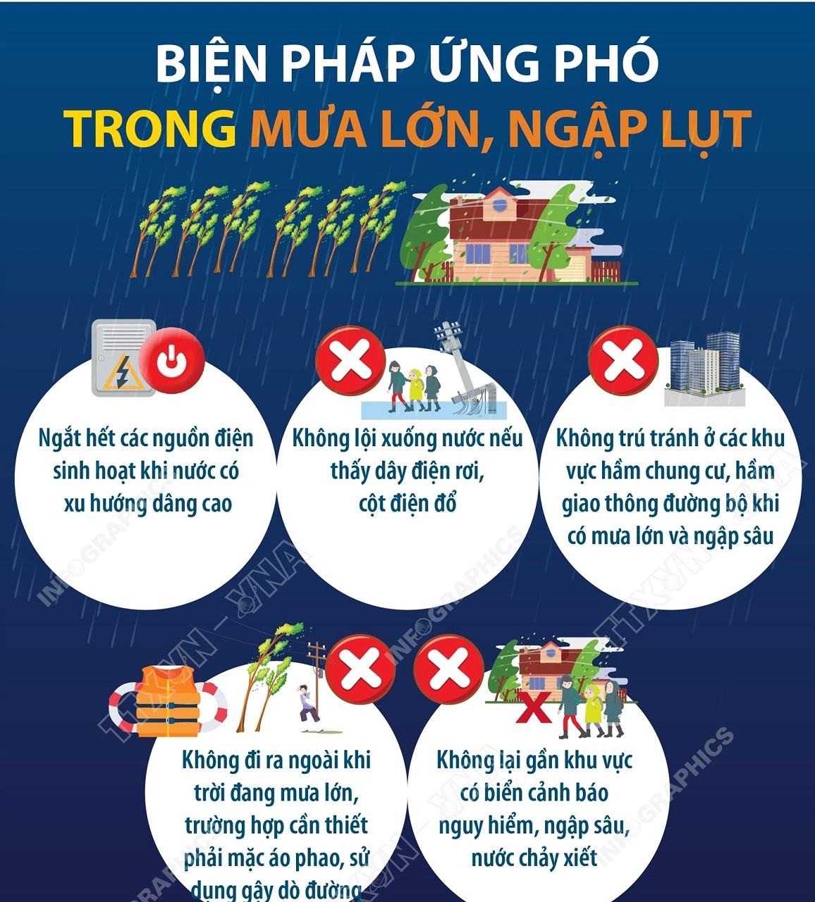 Cơ quan khí tượng khuyến cáo người dân hạn chế di chuyển qua khu vực ngập nước, vùng có nguy cơ sạt lở, chủ động kê cao vật dụng, thiết bị điện, đồng thời theo dõi thường xuyên các bản tin dự báo, cảnh báo thời tiết để có phương án ứng phó kịp thời. Trân trọng./.